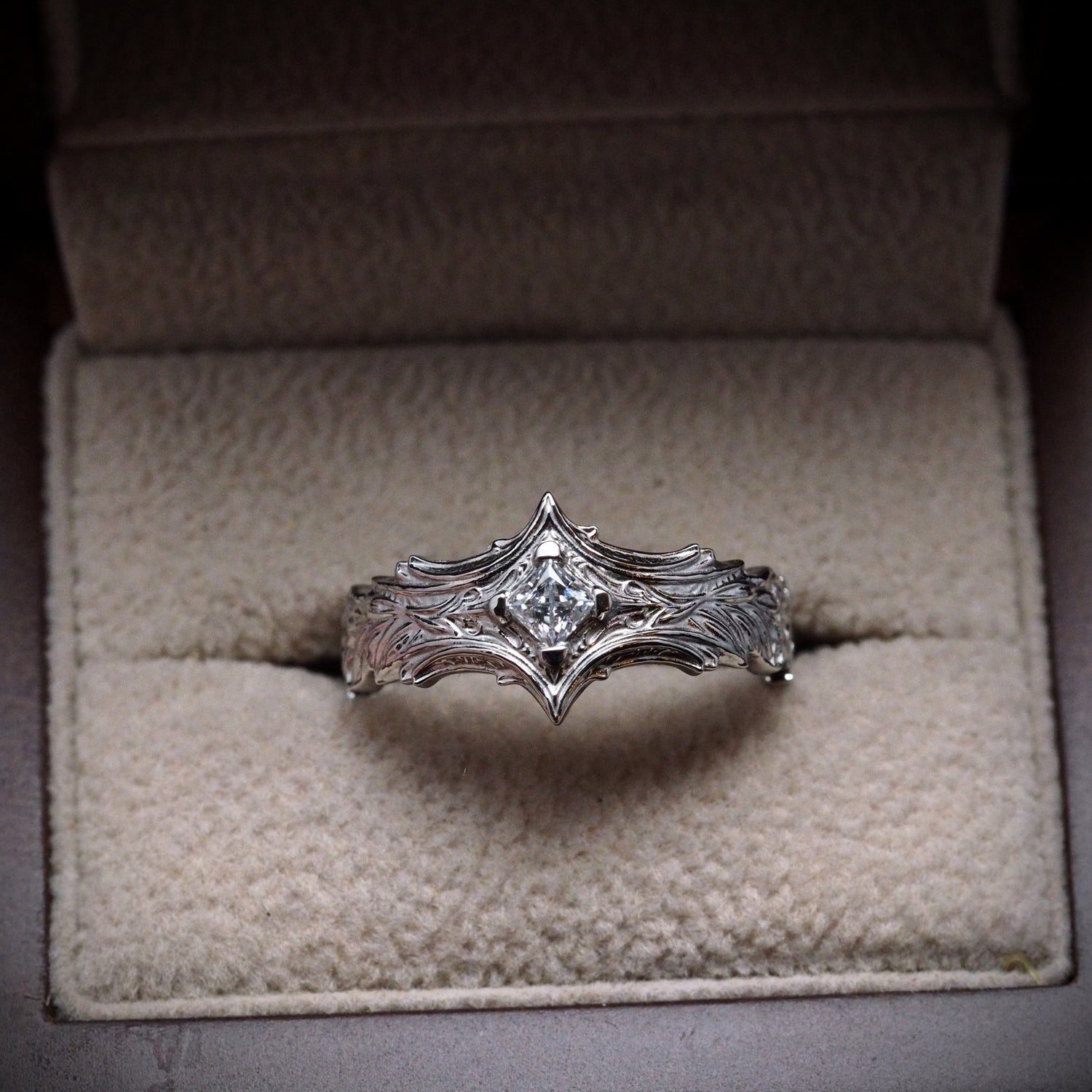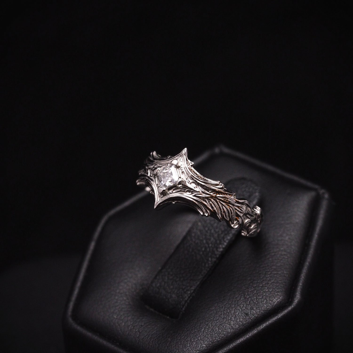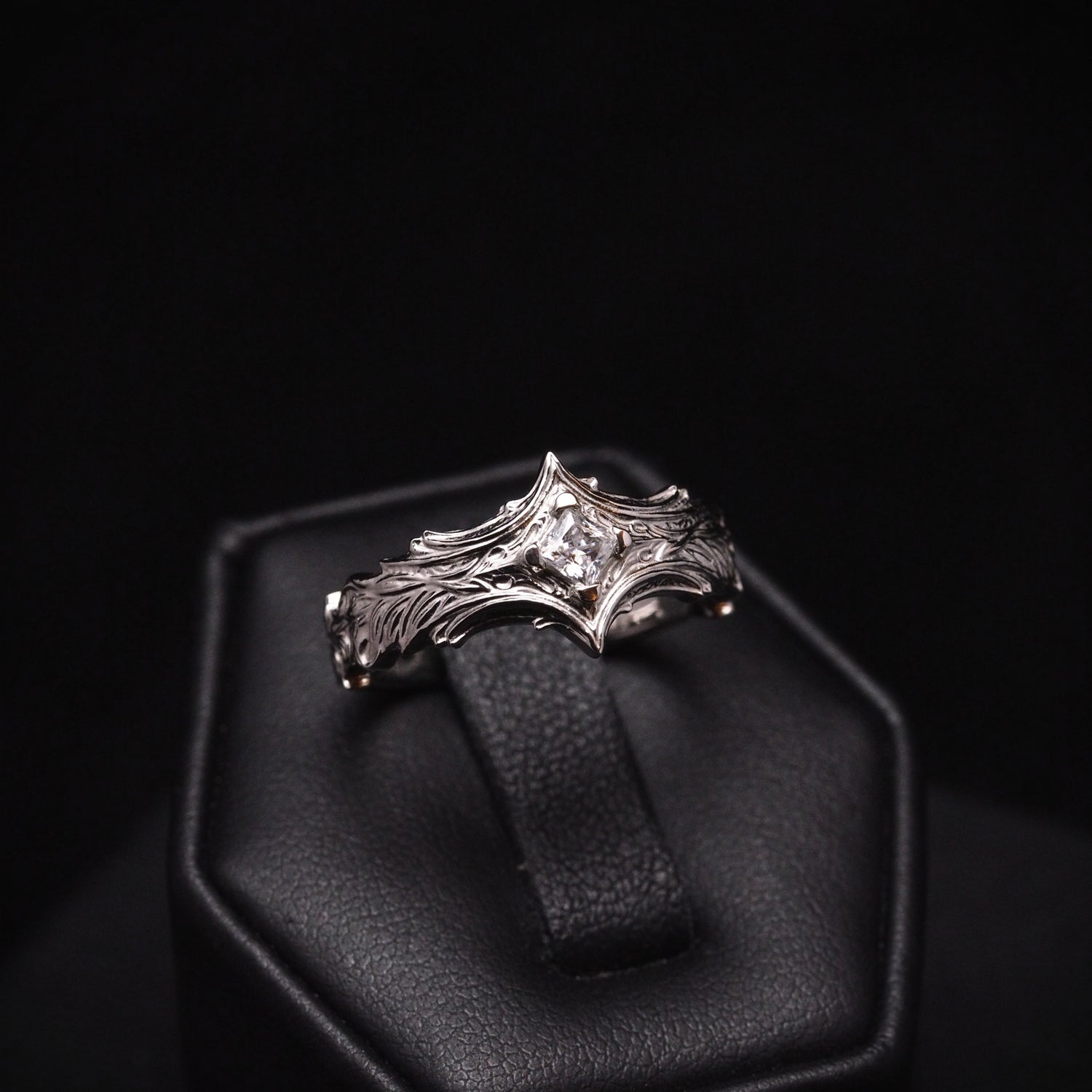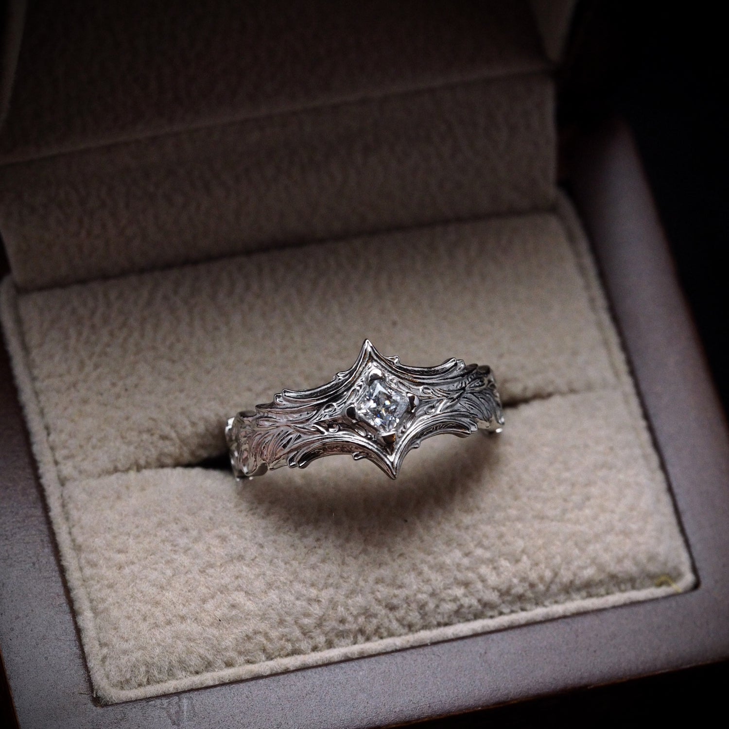 Special order Frenzy in palladium 950, size 7 with a white moissanite.